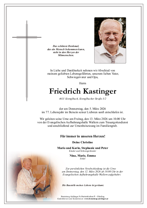 Jeden Sonn- und Feiertag werden um 9.00 Uhr Gottesdienste in der Dreieinigkeitskirche in Wallern und jeden 1. und 3. Sonntag und an Feiertagen um 10.45 Uhr in der Friedenskirche in Gallspach gefeiert.